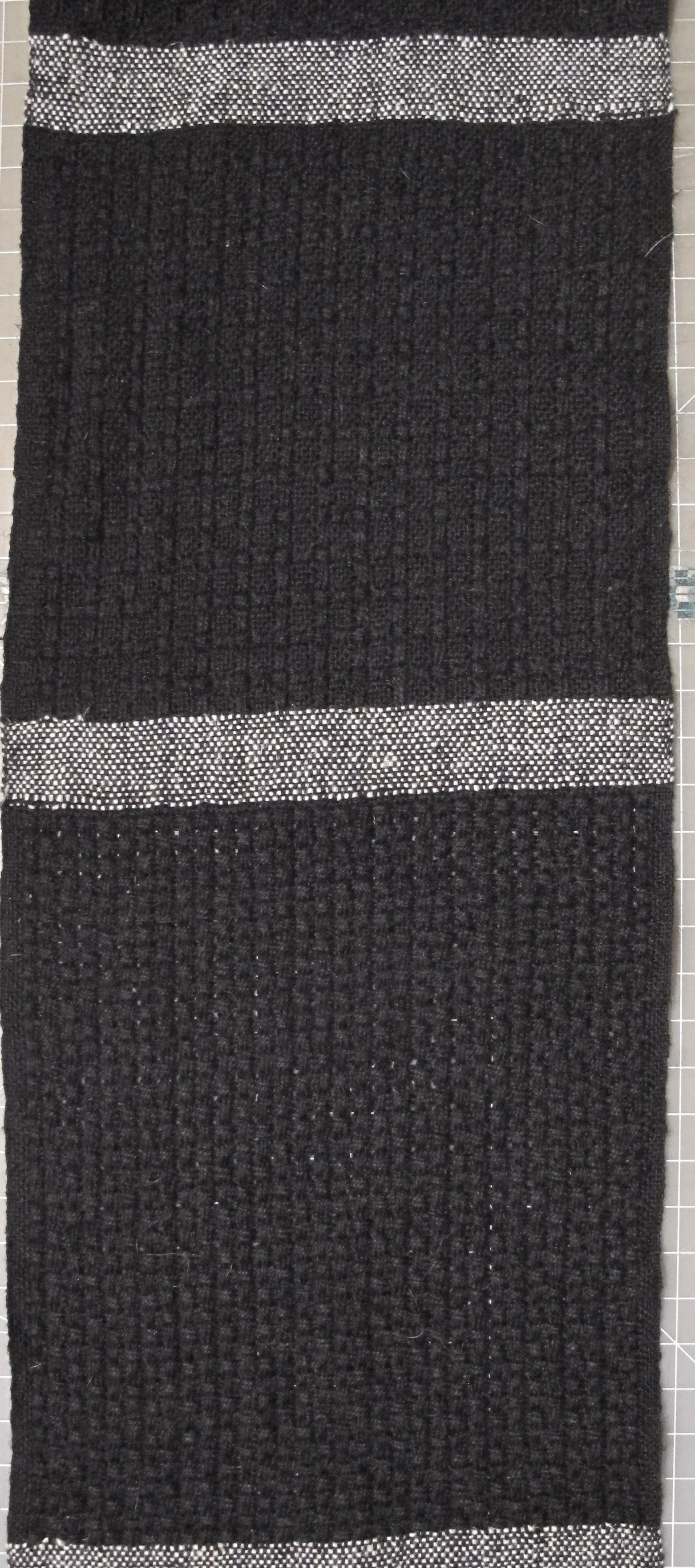This lace-like weaving technique employs plain weave and warp or weft floats.